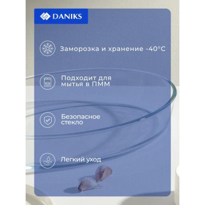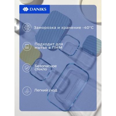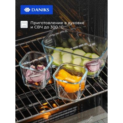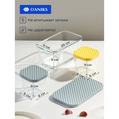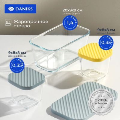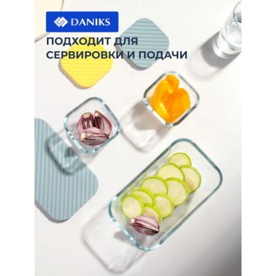 Набор посуды жаропрочной стекло, 3 шт, 1.4, 0.35, 0.35 л, прямоугольный, с крышкой, Daniks, HSFA-004