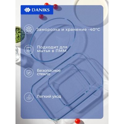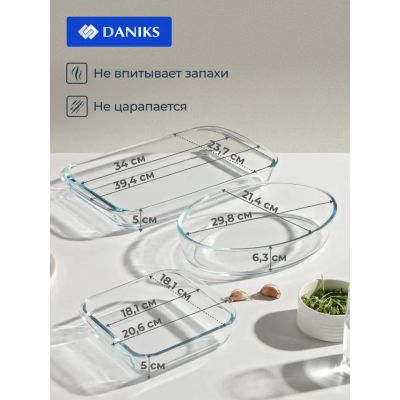 Набор посуды жаропрочной стекло, 3 шт, 39.4х23.7х5, 29.8х21.4х6.3, 20.6х18.1х5 см, 2.9, 2.4, 1.1 л, прямоугольный, Daniks