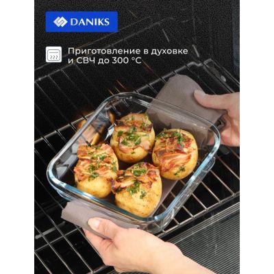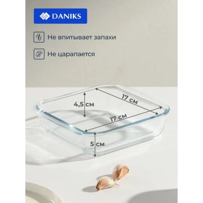 Форма для запекания стекло, 18.1х20.6х5 см, 1.1 л, квадратная, Daniks, OCT-NR4903