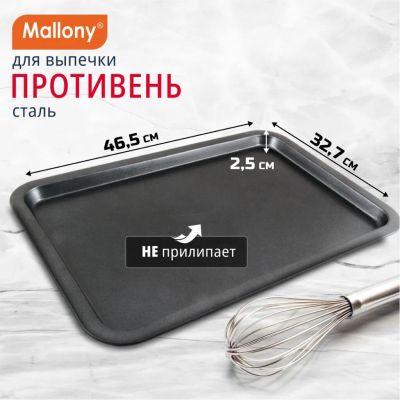 Форма для запекания сталь, 46.5х32.7х2.5 см, антипригарное покрытие, прямоугольная, 0.4 мм, Mallony, BS-001L, 191 303