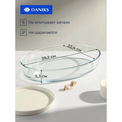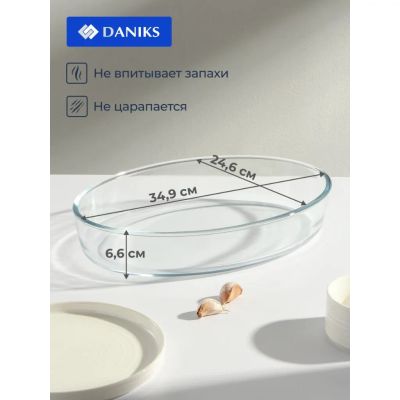 Форма для запекания стекло, 24.6х34.9х6.4 см, 3.2 л, овальная, Daniks, OCT-NR1509