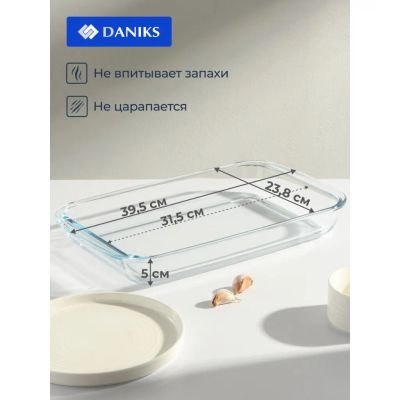 Форма для запекания стекло, 23.8х39.5х5 см, 3 л, прямоугольная, Daniks