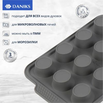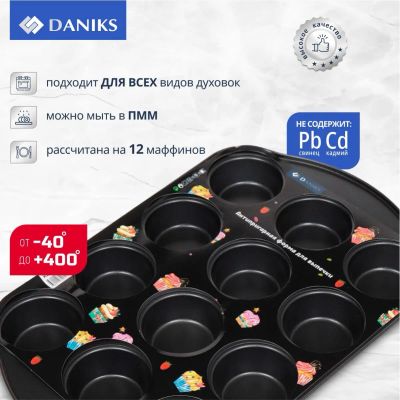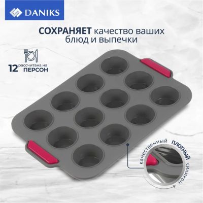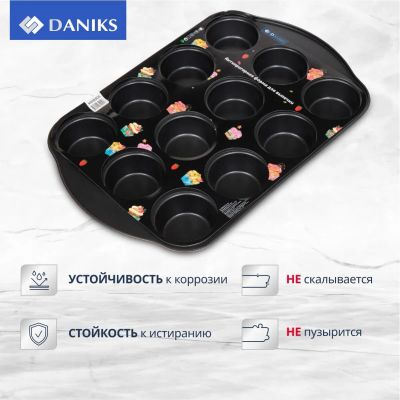Форма для запекания сталь, 26.5х41х3.3 см, антипригарное покрытие, прямоугольная, 12 маффинов, Daniks, KB18305