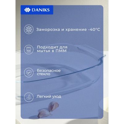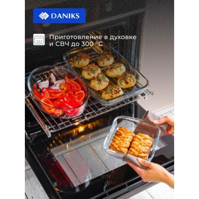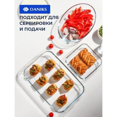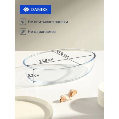 Форма для запекания стекло, 17.9х25.8х5.2 см, 1.53 л, овальная, Daniks, 45084