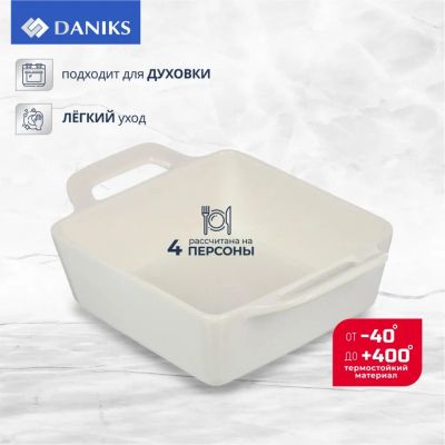 Форма для запекания керамика, 18х18х7.4 см, 1.3 л, прямоугольная, Daniks, Антарктида, Y4-7287