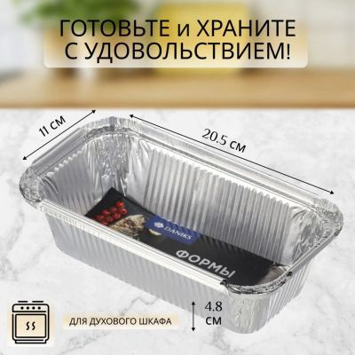 Форма для запекания алюминий, 3 шт, 20.5х11х4.8 см, 0.62 л, прямоугольная, Daniks, 61L