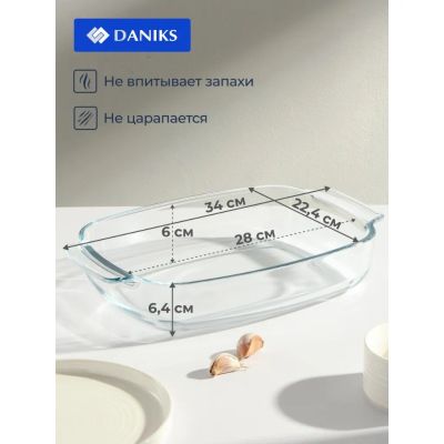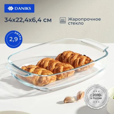 Форма для запекания стекло, 34х22.4х6.4 см, 2.9 л, прямоугольная, Daniks, OCT-NR5607
