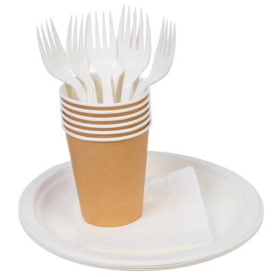 Набор одноразовой посуды 6 персон, вилки, стаканы 250мл, тарелки сахарный тростник, салфетки, Мистерия, Эко, 111053