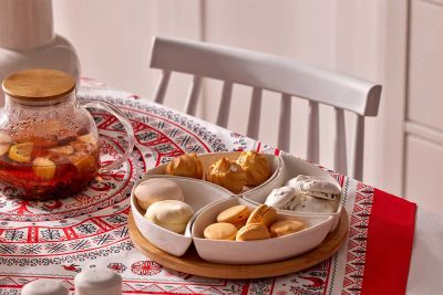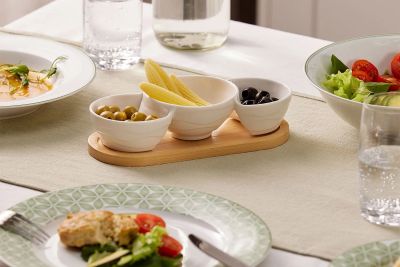Менажница для сервировки, керамика, 29х10х1.5 см, 3 секции, деревянная подставка, Apollo, Breeze, BRZ-04