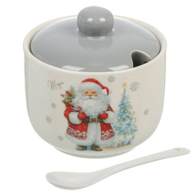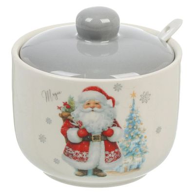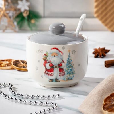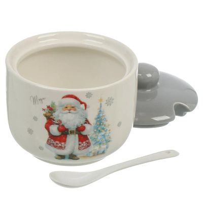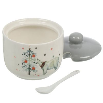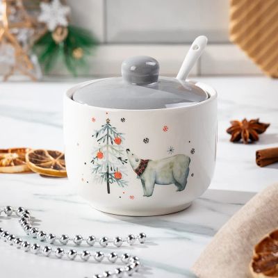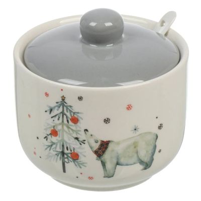 Сахарница 500 мл, доломит, 11.2х11.2х11 см, с ложкой, Daniks, Снежные забавы