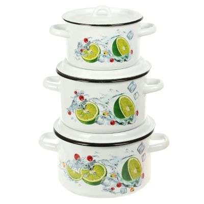 Набор посуды эмалированная сталь, 3 предмета, кастрюли 2, 3, 4 л, Керченский металлургический завод, Лимонный сет-1 Экстра