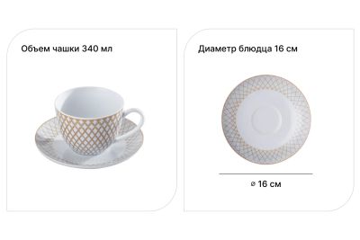 Набор чайный фарфор, 14 предметов, на 6 персон, 250 мл, Добрушский фарфоровый завод, Надежда Платиновый, 8С0648Ф34, подарочная упаковка