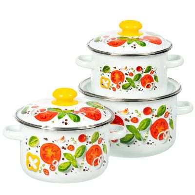 Набор посуды эмалированная сталь, 6 предметов, кастрюли 2,4,5.5 л, индукция, СтальЭмаль, Европейская кухня, 1с408