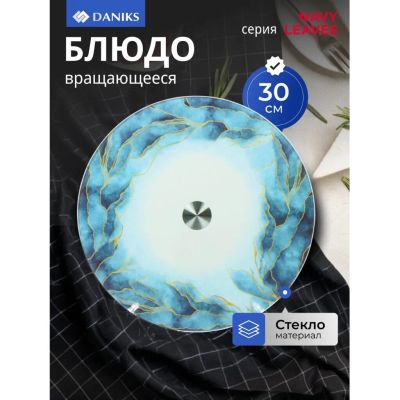 Блюдо стекло, для сервировки, круглое, 30 см, вращающееся, Navy Leaves, Daniks