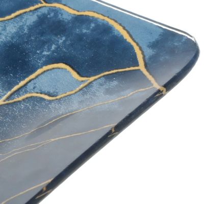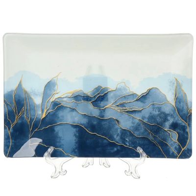 Тарелка десертная, стекло, 20х30 см, прямоугольная, Navy Leaves, Daniks, голубая