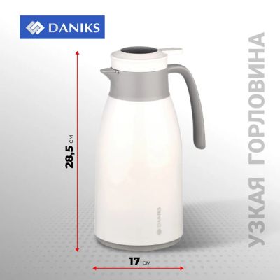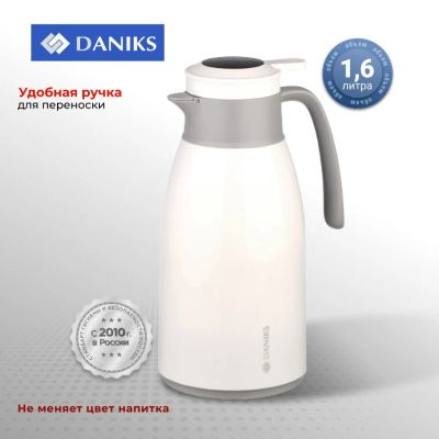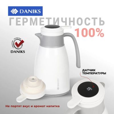 Термос-кувшин пластик, 1.6 л, Daniks, колба стекло, с датчиком, белый, ED-160-white