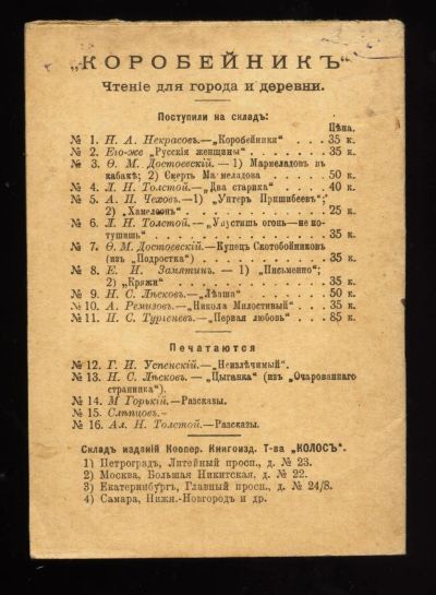 Н. А. Некрасов. Коробейники. * 1918 год издания *
