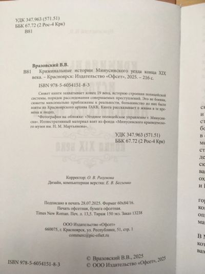 Вразовский В.В. « Криминальные истории Минусинского уезда конца XIX века»
