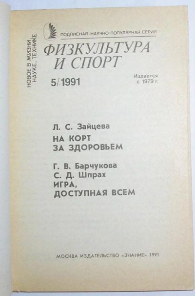 На корт за здоровьем. Игра, доступная всем. Барчукова Г.В., Зайцева Л.С., Шпрах С.Д. 1991 г.