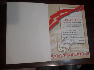 Свидетельство занесения на доску почета за достигнутые высокие рабочие показатели социалистического соревнования 1985 СССР Украинская ССР