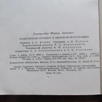 Книга Позитивный процесс в цветной фотографии. Лихтциндер 1969 г брошюра. Б/у.