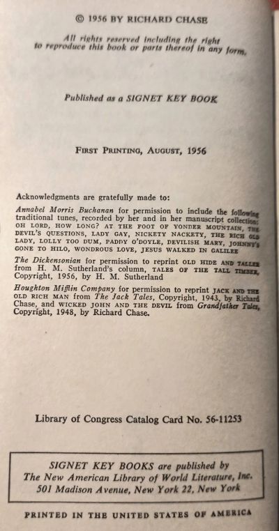 Richard Chase - American Folk Tales and Songs / Ричард Чейз - Американские народные сказки и песни / Издательство: A Signet Key (1956) / Книга на английском языке / A sampler of America's wit and wisdom. A treasury of old-time American Lore...