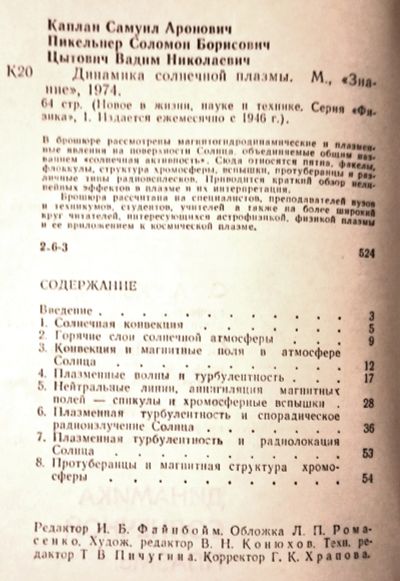 Каплан Самуил, Пикельнер Соломон, Цитович Вадим - Динамика солнечной плазмы / Серия: Новое в жизни, науке, технике. Физика (01/1974). Знание / Редакторы: И. Файнбойм, В. Конюхов. Художник Л. Ромасенко