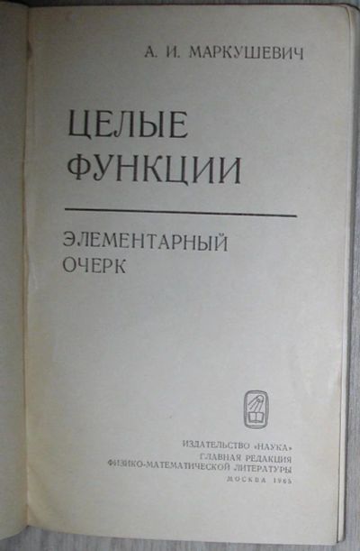 Целые функции. Элементарный очерк. Маркушевич Алексей Иванович. 1965 г.
