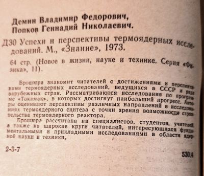 Демин Владимир, Попков Геннадий - Успехи и перспективы термоядерных исследований / Серия: Новое в жизни, науке, технике. Физика (11/1973). Знание / Редакторы: И. Файнбойм, В. Конюхов. Художник Л. Ромасенко / ...исследования по программе "Токамак"...