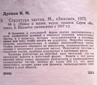 Дремин Игорь - Структура частиц / Серия: Новое в жизни, науке, технике. Физика (05/1975). Знание / Редакторы: И. Вирко, В. Конюхов. Художник Л. Ромасенко