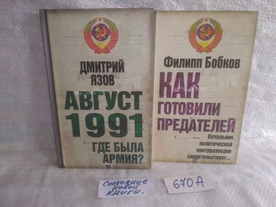 оз..вбр..(670А) Серия Суд Истории (комплект из 2-х книг)...Август 1991. Где была армия? | Язов Дмитрий Тимофеевич, Как готовили предателей. Начальник политической контрразведки свидетельствует... | Бобков Филипп Денисович |