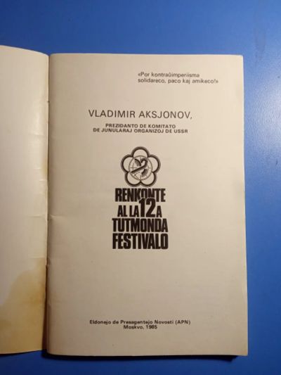 Владимир Аксенов Книга на языке эсперанто Renkonte al la 12a Tutmonda Festivalo