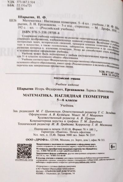 Шарыгин Игорь, Ерганжиева Лариса - Математика. Наглядная геометрия 5-6 классы / Серия: Российский учебник / Издательство: Дрофа (2018) / 978-5-358-19708-4 / Редакторы: М. Циновская, Т. Зельдман, А. Пряхин. Художники: М. Мицкевич, А. Кузнецов