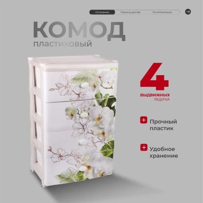 Комод 4 ящика, Орхидеи, 55.5х44х90.5 см, М2638, Альтернатива