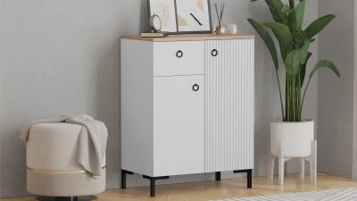 Тумба двухдверная с ящиком Zima, цвет Гикори кингстон Белый