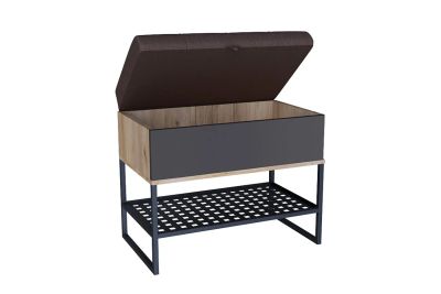 Полка для обуви металл/нубук, 2 секции, 47х30х49 см, с сиденьем, черный, серый, ЗМИ, Торонто 13S, БТ13СЧС