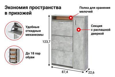 Полка для обуви металл, пластик, 3 секции, 64.5х27х60 см, черная, ЗМИ, Женева 23, ПДО Ж23 Ч