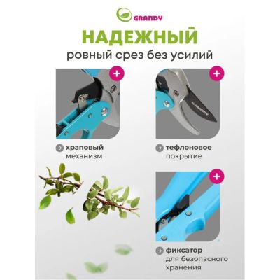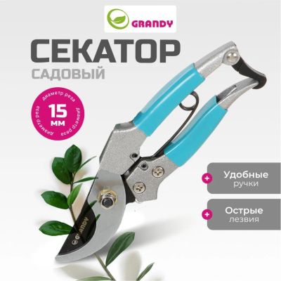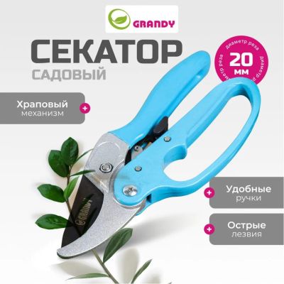 Секатор 200 мм, прямого реза, Grandy, с храповым механизмом, рукоятка металл, резина