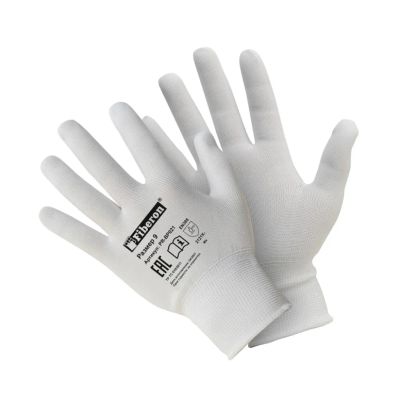 Перчатки для сборочных работ, полиэстер, без рисунка, размер 9 (L), белая основа, Fiberon, европодвес