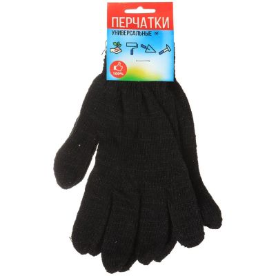 Перчатки х/б, без покрытия, без рисунка, универсальный размер, черная основа, Премиум, европодвес