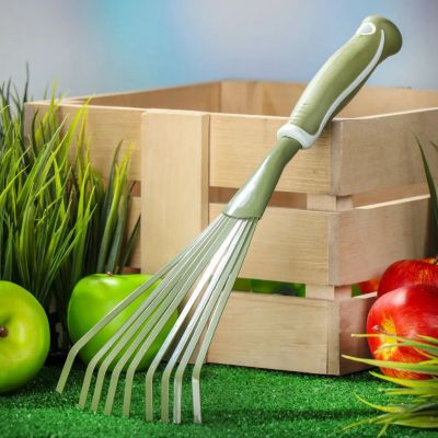 Грабли веерные, 9 зуб, нержавеющая сталь, 13.5 см, Plantic, Light Optimum, черенок пластиковый, 26263-01