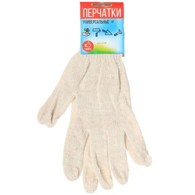 Перчатки х/б, без покрытия, без рисунка, универсальный размер, 7.5 класс вязки, 4 нити, белая основа, европодвес