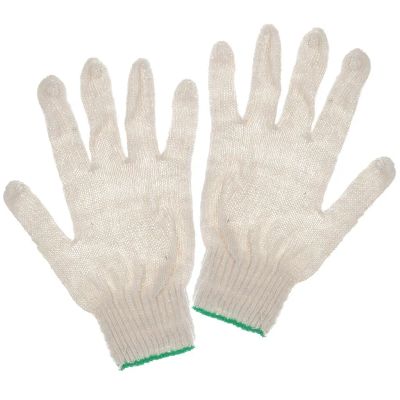 Перчатки х/б, без покрытия, без рисунка, 7.5 класс вязки, 3 нити, белая основа, Эконом