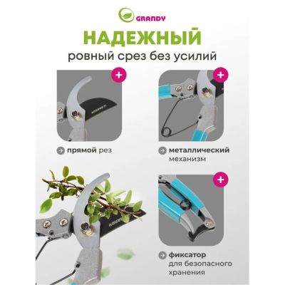 Секатор 180 мм, прямого реза, Grandy, рукоятка металл, резина