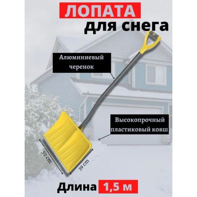 Лопата для снега пластик, с алюминиевой планкой, 410х465х1400 мм, черенок металлический, тулейка 32 мм, Цикл, Купец Standart, 6996-00