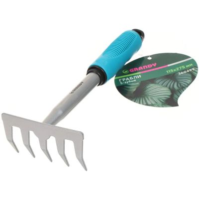 Грабли прямые, 5 зуб, сталь, 11.5 см, Grandy, Connect, черенок пластиковый