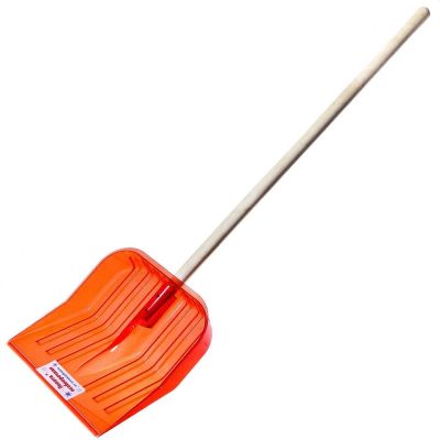 Лопата для снега поликарбонат, 430х420 мм, черенок деревянный, тулейка 40 мм, красная, Альтернатива, М7242