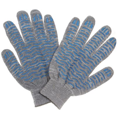 Перчатки х/б, ПВХ покрытие, волна, 10 класс вязки, 5 нитей, серо-белая основа, Березка