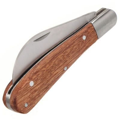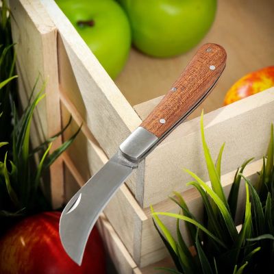 Нож садовый складной, изогнутый лезвие, 170 мм, рукоятка дерево, Grandy