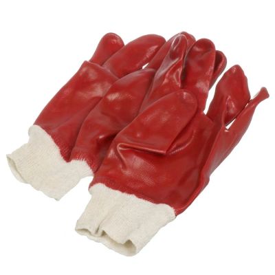Перчатки маслобензостойкие, трикотаж, ПВХ покрытие, без рисунка, красная основа, Гранат, Золотая перчатка